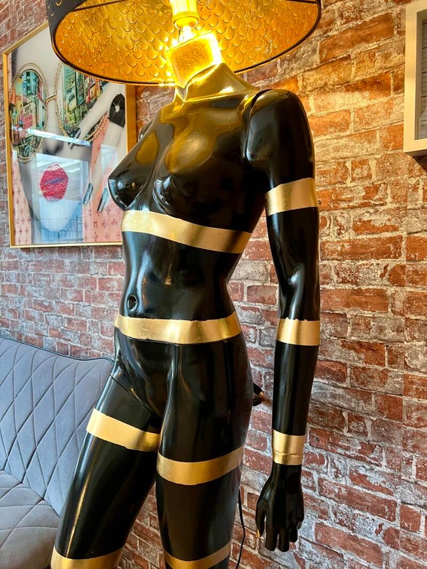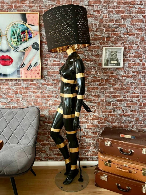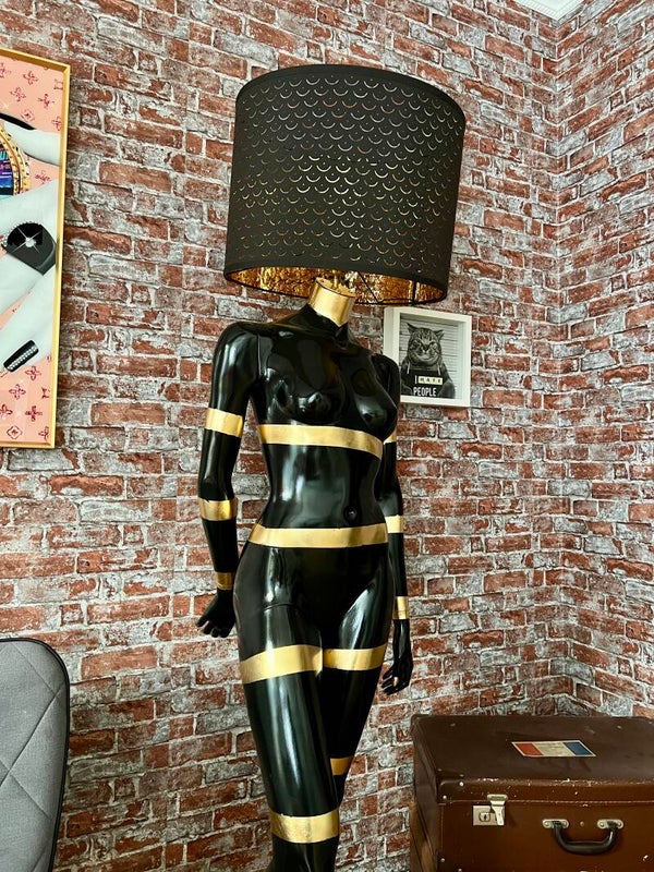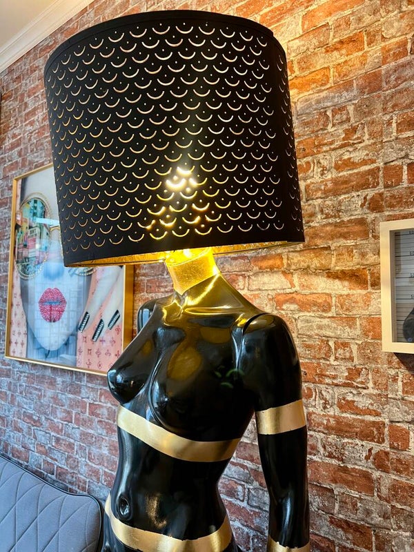 Der Clou? Der Lampenschirm ersetzt den Kopf und macht sie zur perfekten Fusion aus Kunst & Funktion.