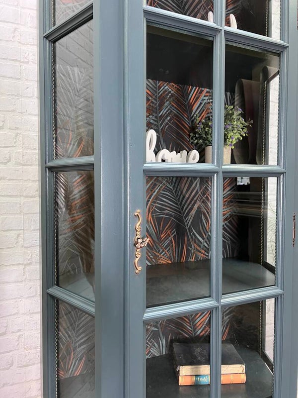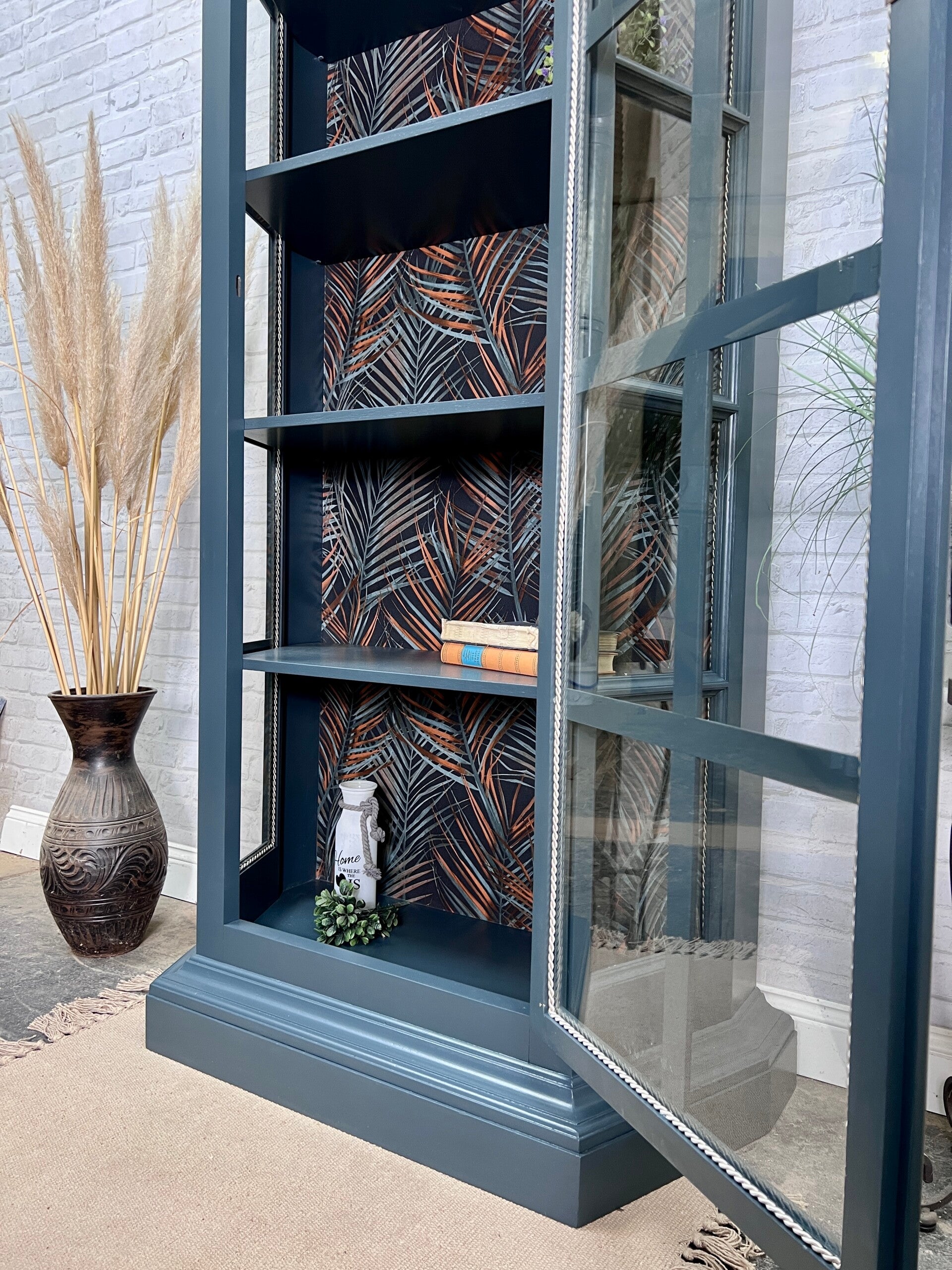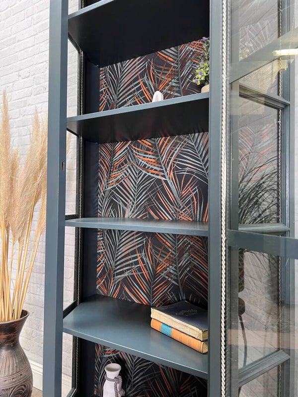 Im Inneren überrascht eine Rückwand mit stilvollem Blättermuster, das dem Stück Tiefe und Charakter verleiht.