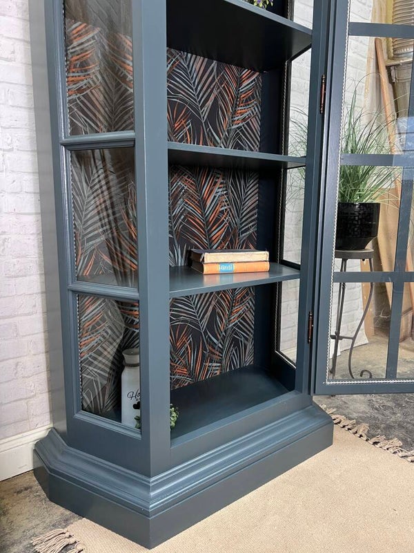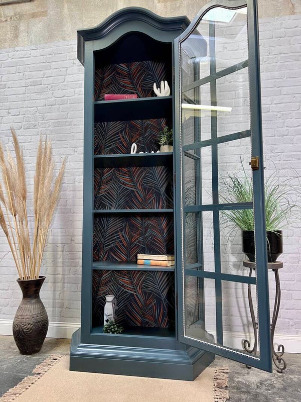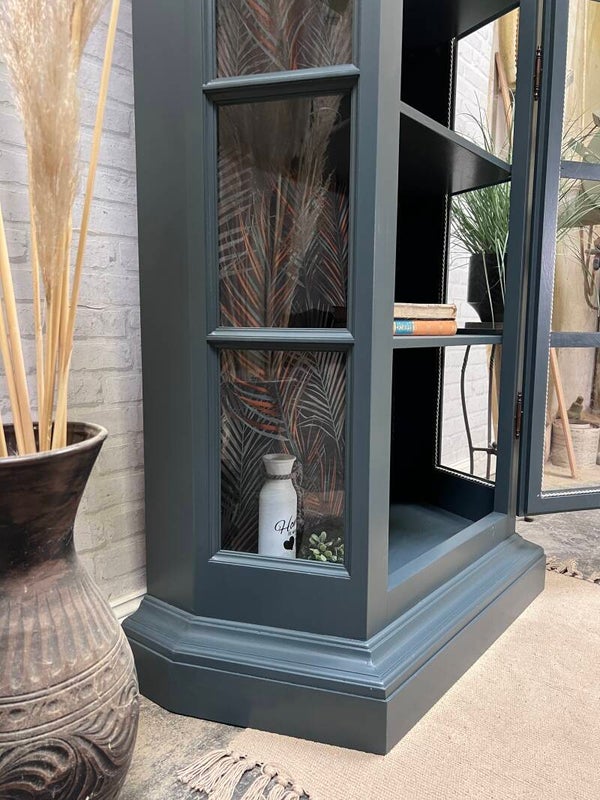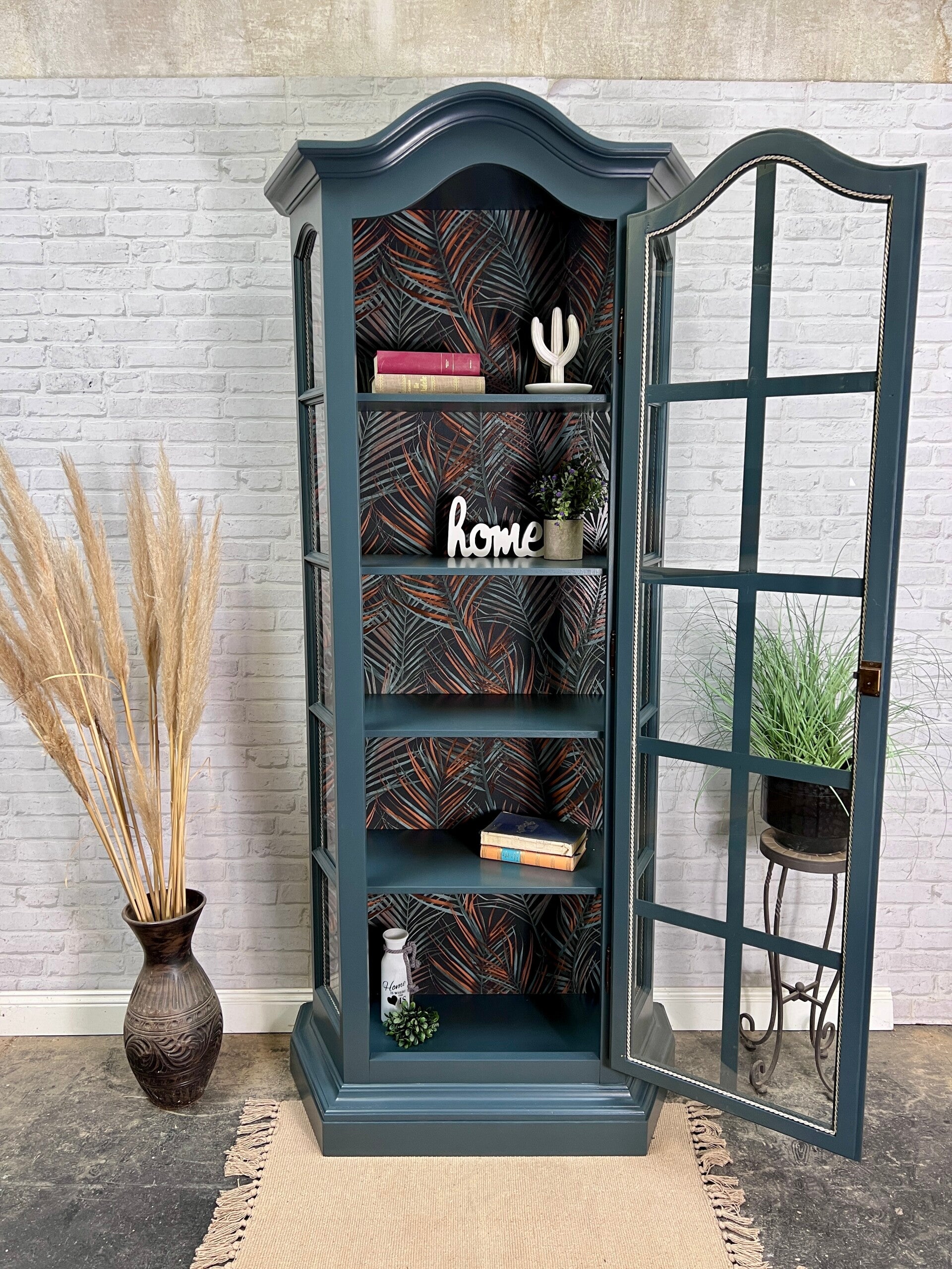 Im Inneren überrascht eine Rückwand mit stilvollem Blättermuster, das dem Stück Tiefe und Charakter verleiht.